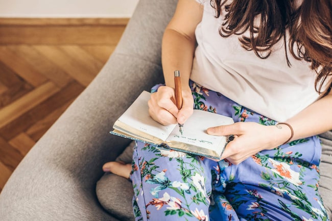 Ich schreibe eine Zeile in mein Tagebuch.